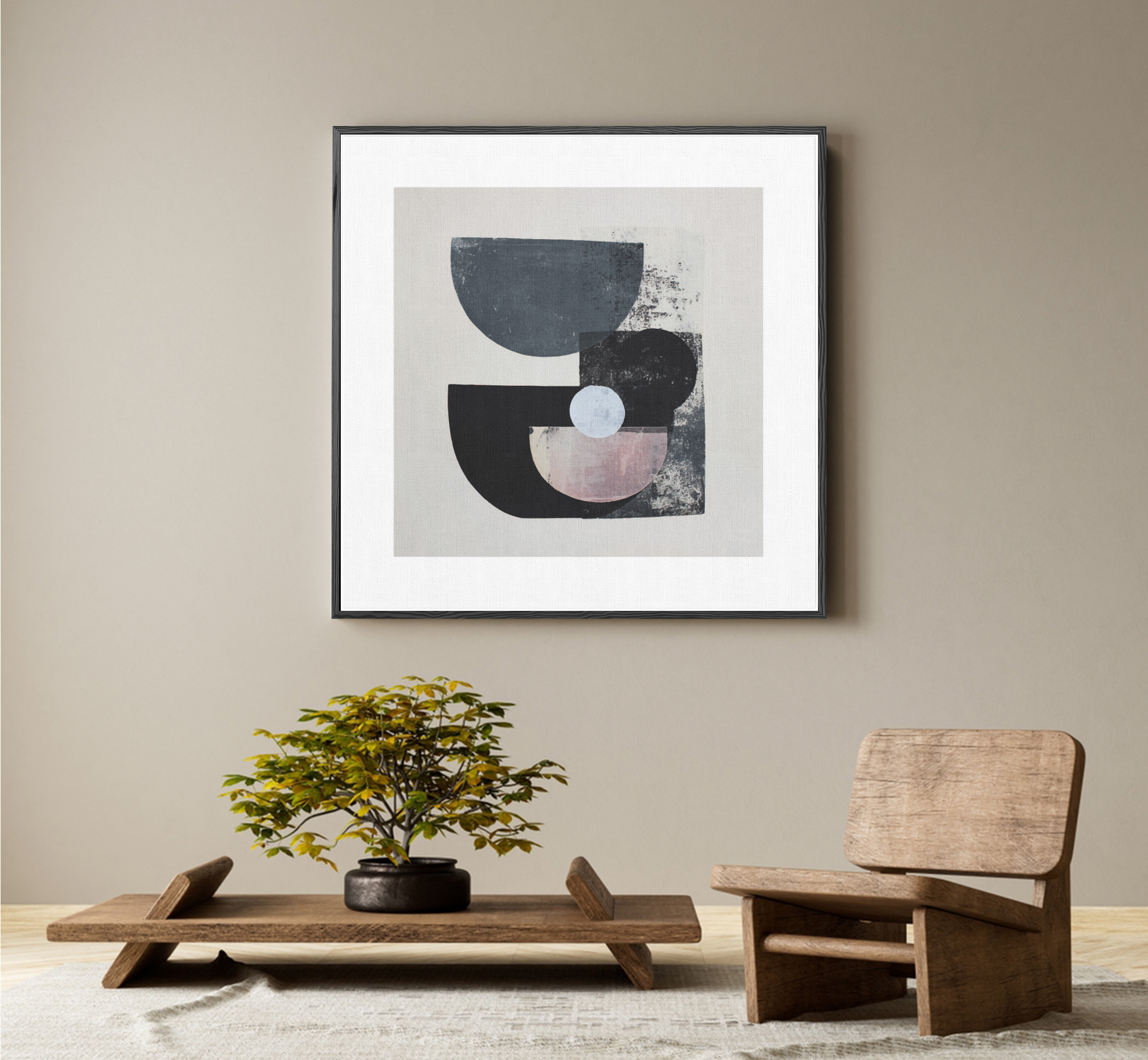 Layers of half-circles and muted tones collide to create a rhythm of calm tension. This artwork embodies movement within stillness — where simplicity unveils infinite depth.
