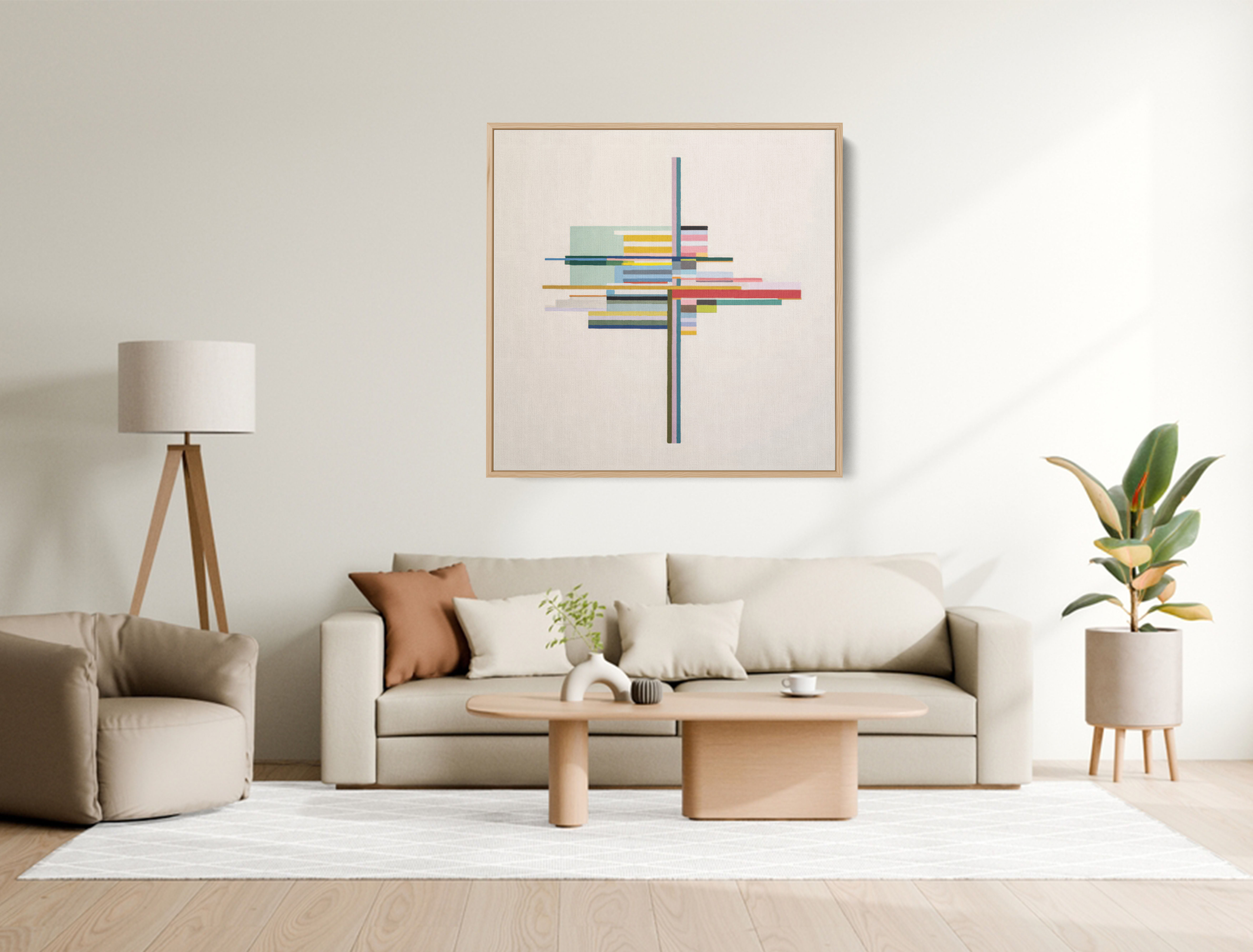 A rhythmic composition of intersecting lines and colors, this artwork transforms geometry into music. Each band of color becomes a note, weaving harmony and tension, balance and disruption — a visual orchestra of modern abstraction.