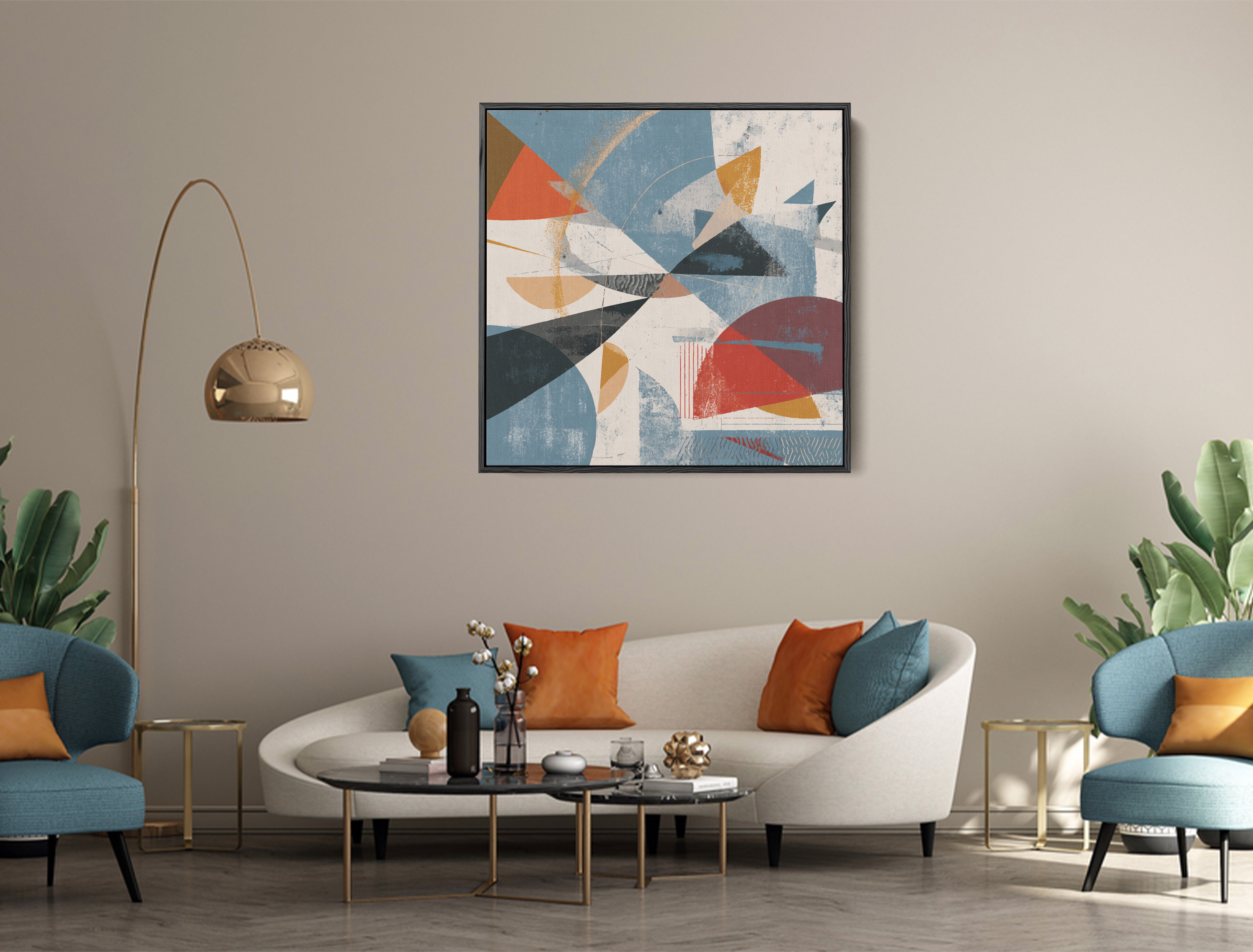 Dynamic arcs, sharp angles, and bold planes of color collide in a striking balance of motion and stillness. This artwork embodies the dialogue between geometry and emotion, where each shape feels like a note in a visual symphony.