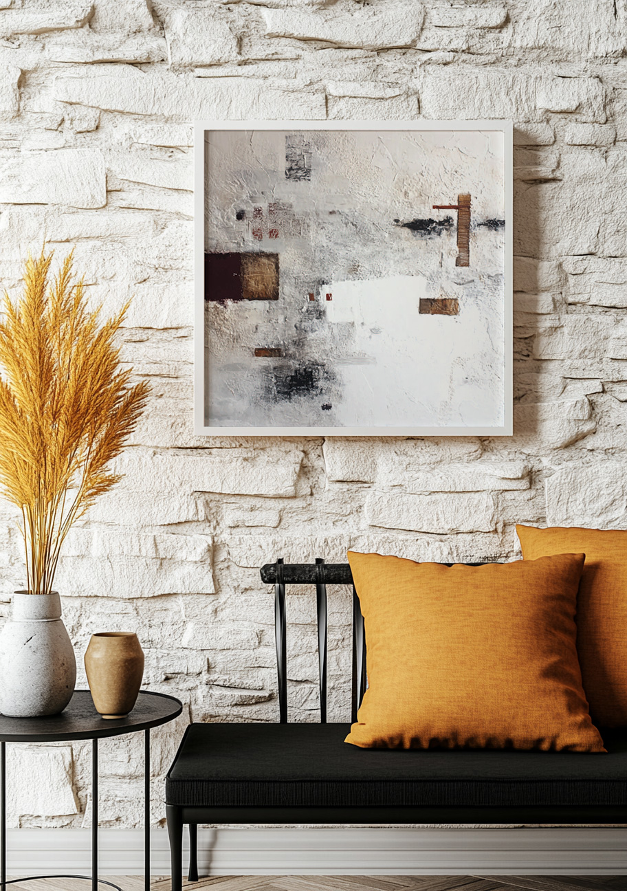 A minimalist journey of texture and form, where fragments of earth tones breathe against vast white space